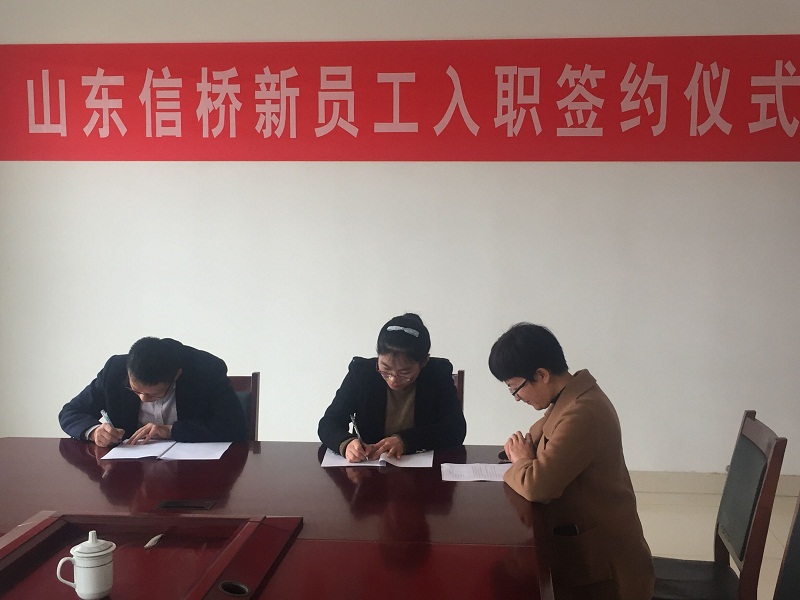 2018年11月30日下午3點,新員工入職簽約儀式在泰安信橋二樓會議室舉行,公司副總石振偉與新員工李佳欣參加,同時公司財務總監(jiān)張燕與人事人員出席。
