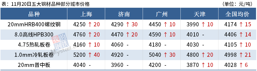 ◎ 中天鋼鐵11月下旬出廠(chǎng)價(jià)螺紋鋼漲130、線(xiàn)材盤(pán)螺漲130,帶鋼漲100。