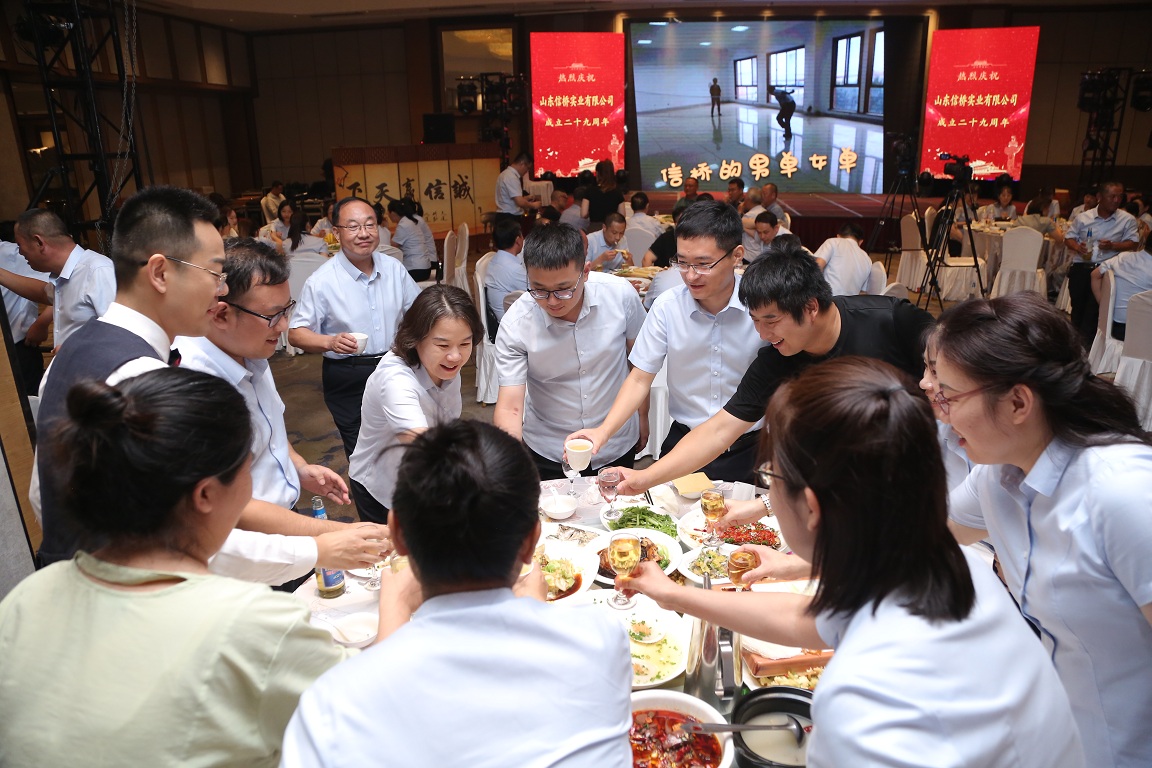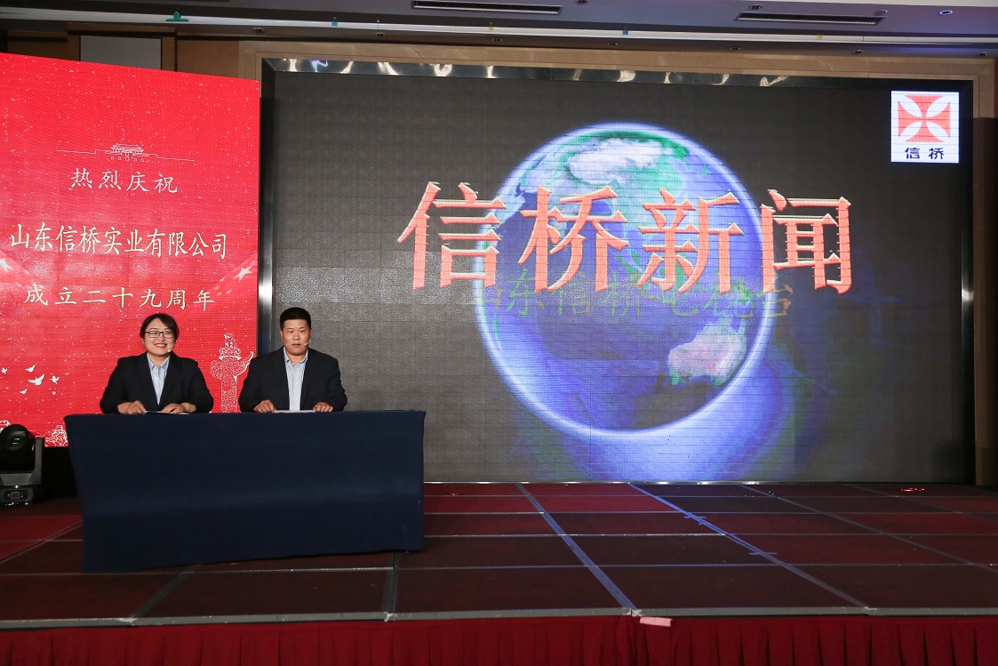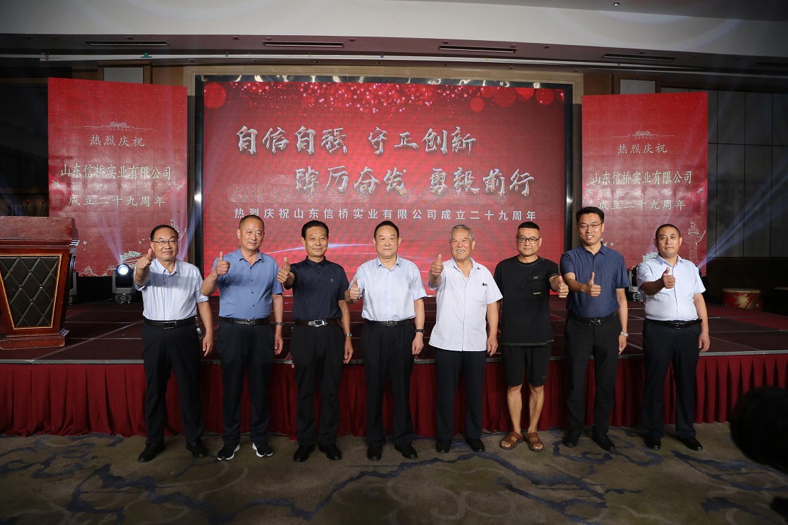 歲月如歌,風(fēng)霜如畫,二十九年彈指一揮間,山東信橋?qū)崢I(yè)有限公司(以下簡(jiǎn)稱山東信橋)迎來(lái)了二十九周歲的生日。二十九年來(lái),信橋人在激烈的市場(chǎng)競(jìng)爭(zhēng)中奮力拼搏、砥礪前行,接受了市場(chǎng)風(fēng)風(fēng)雨雨的洗禮,取得了累累碩果。為了慶祝這一特殊的日子,2023年8月8日,以“激流勇進(jìn),安定團(tuán)結(jié)謀發(fā)展 披荊斬棘,開(kāi)拓創(chuàng)新向未來(lái)”為主題的山東信橋二十九周年慶典活動(dòng)在寶盛大酒店舉行。