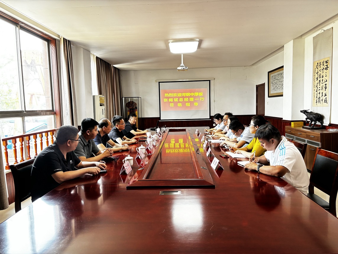 5月27日上午,河鋼中厚板張闊斌總經(jīng)理一行五人蒞臨山東信橋?qū)崢I(yè)有限公司?偨(jīng)理徐宏對(duì)張闊斌一行的到來(lái)表示熱烈歡迎。
